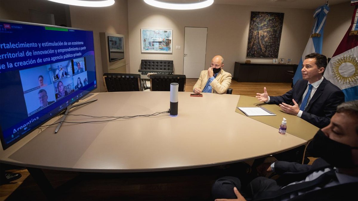 Durante la premiación, el vicegobernador estuvo acompañado por el ministro de Ciencia y Tecnología, Pablo de Chiara; Diego Casali, presidente de la Agencia Innovar y Emprender; David Urreta, subsecretario de Integración Regional y Relaciones Internacionales. El secretario de Integración Regional, Jorge Montoya, siguió la transmisión de manera virtual.