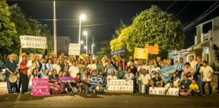 En la marcha, que comenzó pasadas las 20 horas, los manifestantes se congregaron frente al nosocomio para luego marchar por cale Belgrano hasta el centro de la ciudad. Se observaron pancartas identificatorias de cada área y se entonó el Himno Nacional Argentino.
