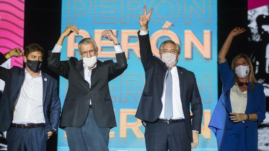 En el acto de asunción, Fernández estuvo acompañado por todos los sectores del peronismo que consensuaron la lista denominada “Unidad y Federalismo”, que representa a los distintos espacios dentro del movimiento justicialista, incluidas agrupaciones como La Cámpora, que había quedado afuera del PJ en 2016.
