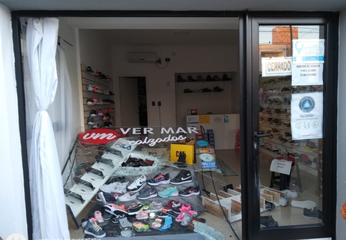 Los delincuentes rompieron por completo la vidriera del local y se llevaron aproximadamente 30 pares de zapatillas.
