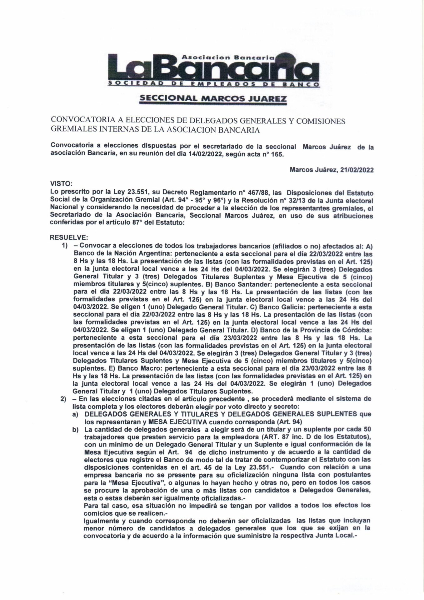 #LaBancaria #EleccionesDeDelegados #MarcosJuárez #Semanariomj #Semanario60Años