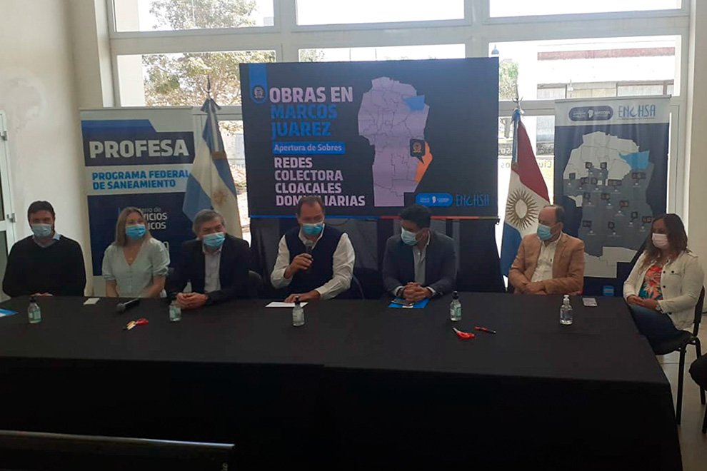 En la ciudad de Marcos Juárez se realizó este martes la apertura de ofertas correspondiente a la licitación de la obra de redes colectoras domiciliarias, que se ejecutarán en el marco del Programa Federal de Saneamiento que llevan a cabo el Ministerio de Servicios Públicos y el Ente Nacional de Obras Hídricas de Saneamiento (ENOHSA).