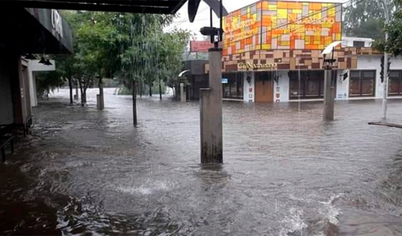 Más de 80 milímetros en pocas horas causaron graves inconvenientes en la localidad. Hay anegamiento de calles y viviendas con agua en el interior por el desborde del cauce.